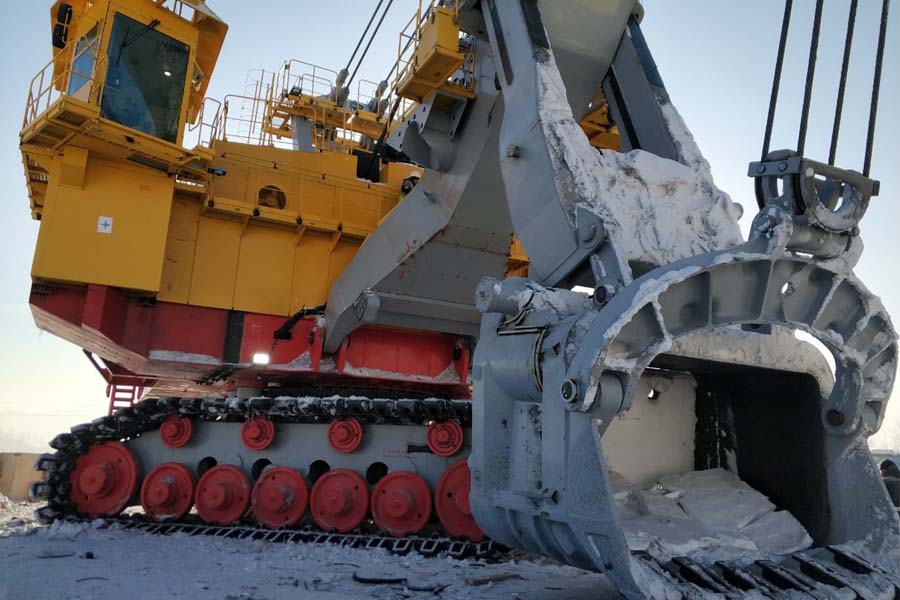 ЭКГ используется для открытой добычи полезных ископаемых в цветной металлургии и черной металлургии угольной промышленности а также в экстремальных условиях при строительстве крупномасштабных промышленных и водохозяйственных объектов (температура от минус до 50 градусов выше нуля). ЭКГ является одним из основных горных оборудований для открытых рудников с производительностю десятки миллионов тонн. Преимущества экскаватора: высокая производительность повышеная скорость работы и низкие эксплуатационные расходы. ЭКГ является общепринятым горным оборудованием. ЭКГ составляется из ходных устройств поворотных устройств рабочих механизмов маслянных систем и систем подачи воздуха. Ковш тоже является основным элементом ЭКГ. Он непосредственно воспринимает силу выкапываемой руды поэтому он сильно изнашивается. Рукоять также является одной из основных частей в процессе выемки грунта с помощью экскаватора. Её функция заключается в том чтобы соединить и поддерживать ковш и передать толкающее действие на ковш. Ковш совершает действие по копанию почвы под совместным действием толкающих и подъемных сил.